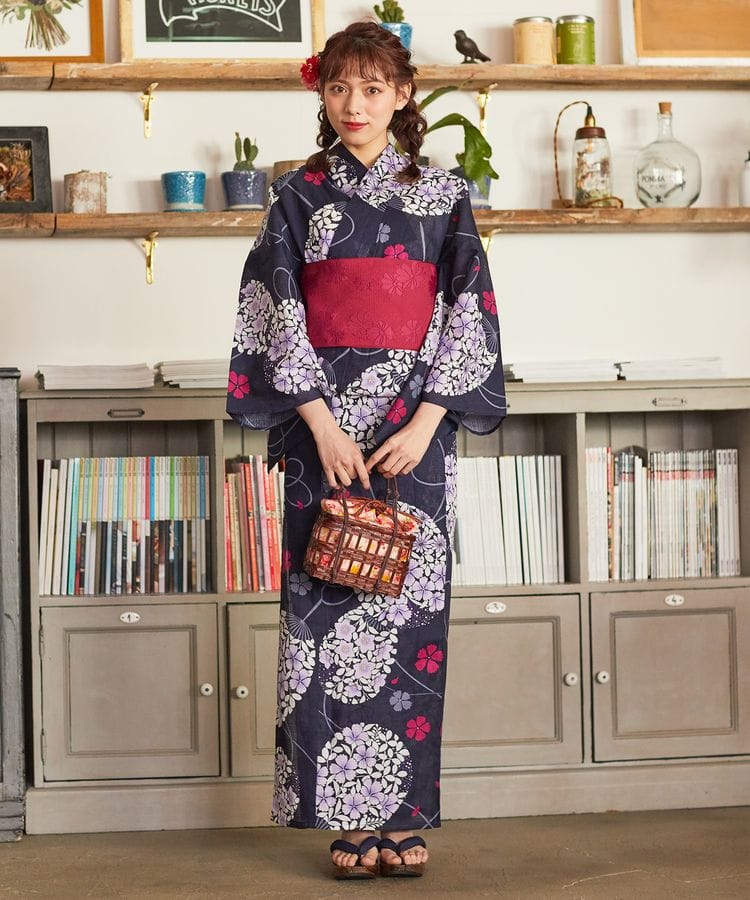 Max70 Off Sale 9 12迄 浴衣 レディース 紫陽花 紺 綿絽 大人 個性的 花火大会 夏祭り 女性浴衣 女性ゆかた 浴衣単品 夏着物 きもの町オリジナル Kimonomachi メール便不可 Ss26ykl15 京都きもの町